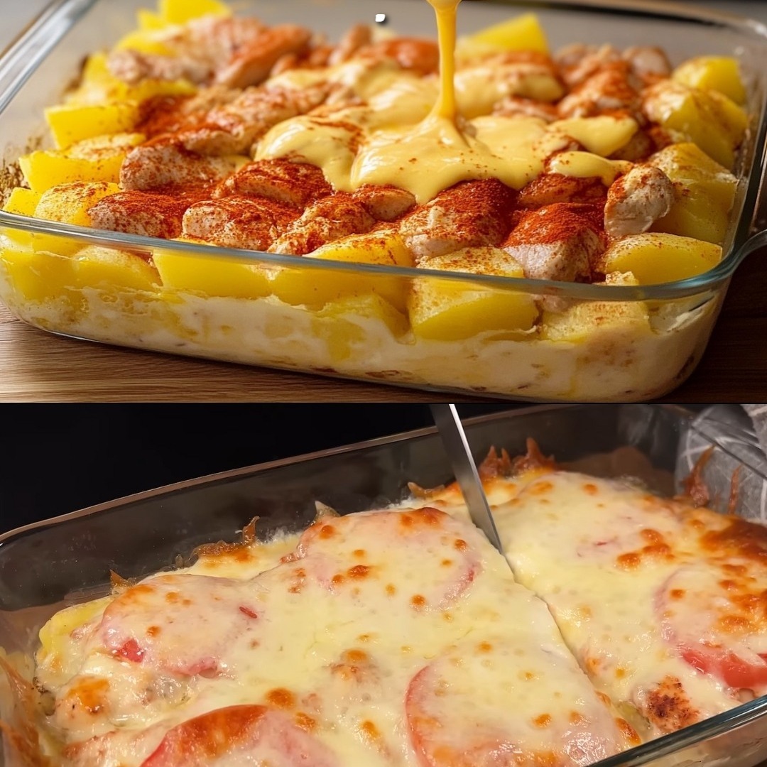 Distribuire gli anelli di cipolla sopra e intorno al pollo.