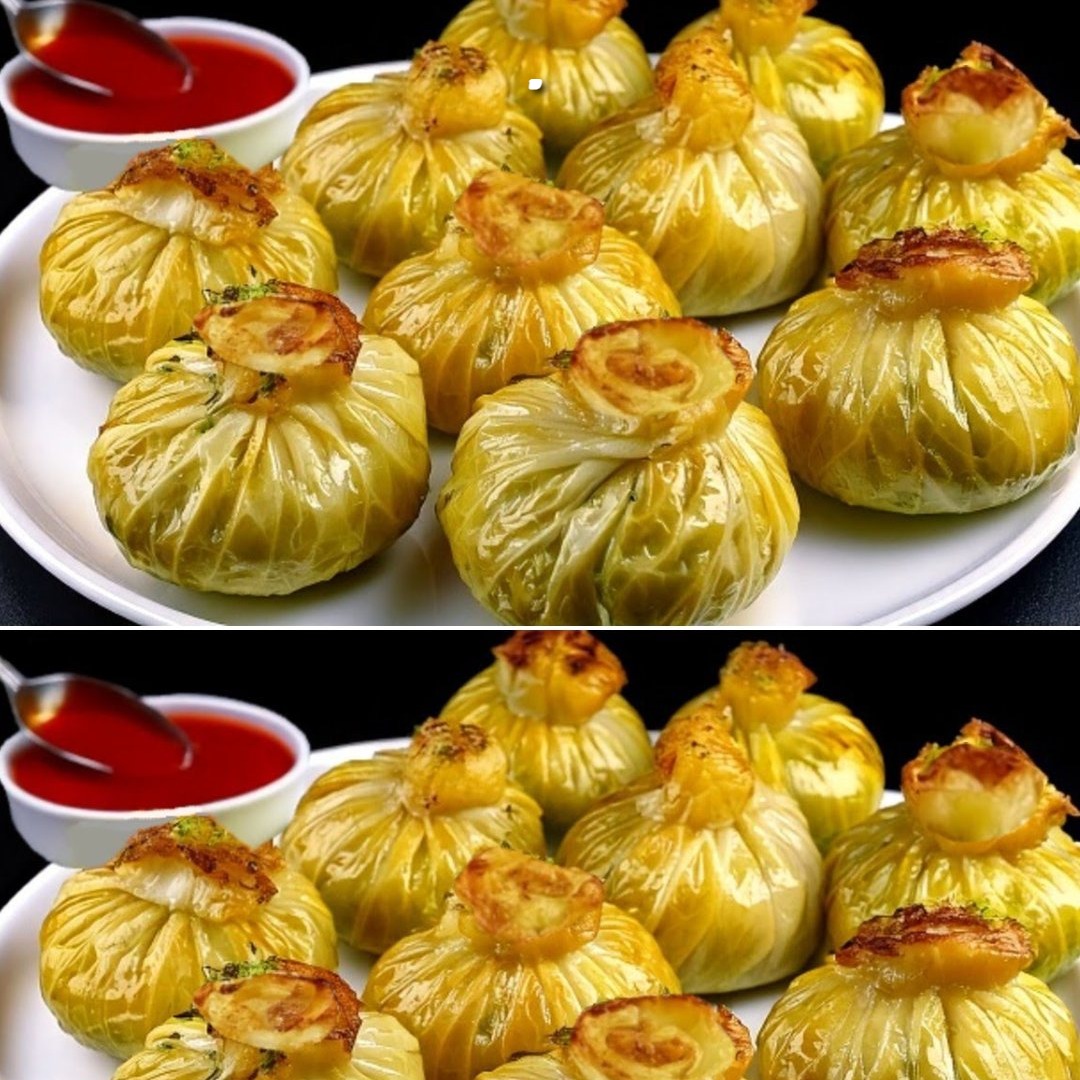 Questi squisiti momo di cavolo trasformano semplici foglie di cavolo in eleganti involtini ripieni di un saporito mix di riso, carne e funghi. Legati come piccole confezioni regalo e serviti con una salsa di pomodoro piccante e saporita, questi involtini di cavolo sono visivamente accattivanti e incredibilmente deliziosi.