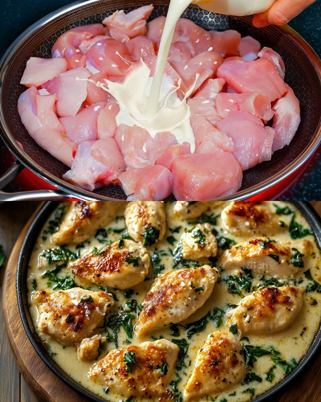 Un piatto classico e raffinato, il pollo alla Fiorentina combina sapori delicati e cremosi con una base di spinaci freschi. Perfetto per una cena speciale o un pasto confortevole.