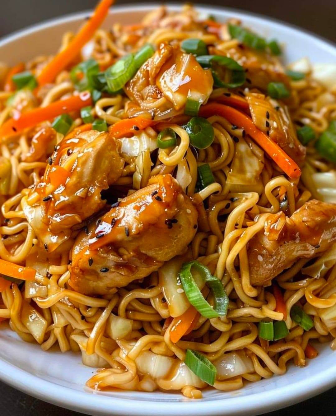 1 cucchiaio di olio di sesamo 1 cucchiaino di zucchero 1/2 tazza di brodo di pollo Cipolle verdi fresche e semi di sesamo per guarnire