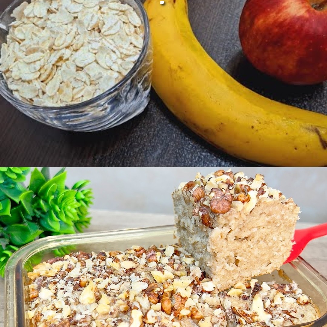 Porridge sostanzioso al forno con mele, banane e noci