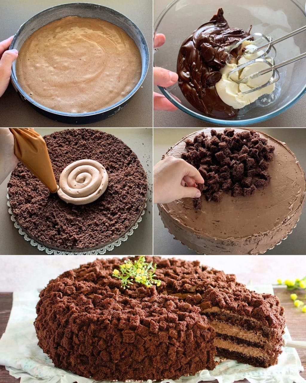 La torta mimosa al cioccolato è una reinterpretazione golosa della celebre torta mimosa, tradizionalmente preparata per la Festa della Donna. In questa variante, il cioccolato prende il posto dell’ananas e della crema chantilly, trasformando un dolce delicato in una torta più ricca e avvolgente, perfetta per tutte le occasioni in cui si vuole unire eleganza e golosità. Morbidi strati di pan di Spagna al cacao, farciti con una crema vellutata al cioccolato e ricoperti da briciole soffici, danno vita a un dolce che conquista al primo assaggio.